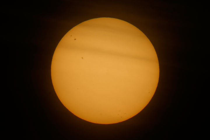 [베이루트=AP/뉴시스] 6일(현지 시간) 레바논 베이루트에 이례적으로 따뜻한 날씨가 이어진 가운데, 구름 사이에 비친 태양에서 흑점이 관측되고 있다. 태양 흑점은 태양 표면 주위보다 상대적으로 온도가 낮아 어둡게 보이는 부분을 말한다. 2026.01.07.