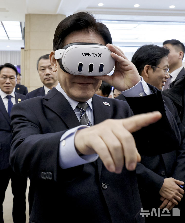 VR기기 벤타X 체험 하는 이재명 대통령