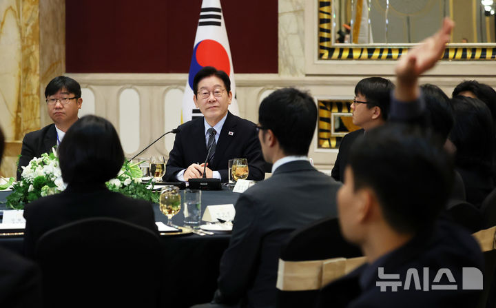 [상하이=뉴시스] 최동준 기자 = 중국을 국빈 방문 중인 이재명 대통령이 7일(현지 시간) 상하이 한 호텔에서 열린 순방 기자단 오찬 간담회에서 기자 질문을 받고 있다. 2026.01.07. [email protected]