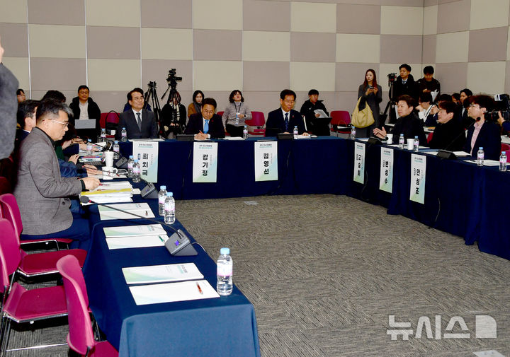 [광주=뉴시스] 류형근 기자 = 7일 오후 광주 서구 김대중컨벤션센터 3층에서 광주·전남 행정통합 추진방향 정책토론회가 열리고 있다. 2026.01.07. [email protected]