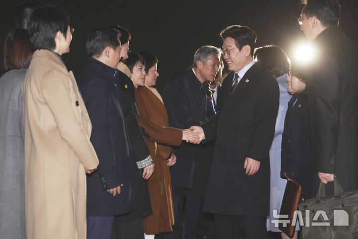 [상하이=뉴시스] 최동준 기자 = 중국 국빈 방문 일정을 마친 이재명 대통령이 7일(현지 시간) 상하이 푸동 국제공항에서 환송 인사들과 인사하고 있다. 2026.01.07. [email protected]