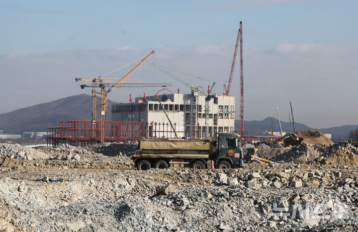 [용인=뉴시스] 김종택 기자 = 9일 경기도 용인시 처인구 원삼면 용인반도체클러스터 일반산업단지 공사현장에서 분주하게 공사가 진행되고 있다. (공동취재) 2026.01.09. [email protected]