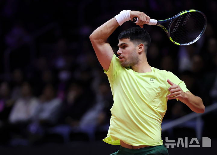 [인천=뉴시스] 홍효식 기자 = 카를로스 알카라스가 9일 오후 인천 중구 인스파이어 아레나에서 열린 '현대카드 슈퍼매치 14'에서 얀니크 신네르와 경기하고 있다. 2026.01.09. [email protected]