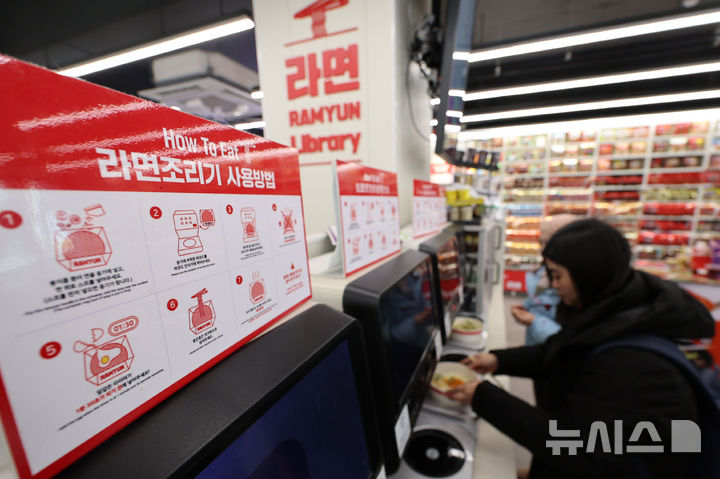 관세청에 따르면 작년 한국 라면 수출액은 전년 대비 21.8% 증가해 역대 최대인 15억 2,100만달러(약 2조2천억원)를 기록한 것으로 잠정 집계됐다. 사진은 11일 서울 마포구 CU 홍대상상점에서 외국인 관광객이 라면을 끓이는 모습. 2026.01.11. [email protected]
