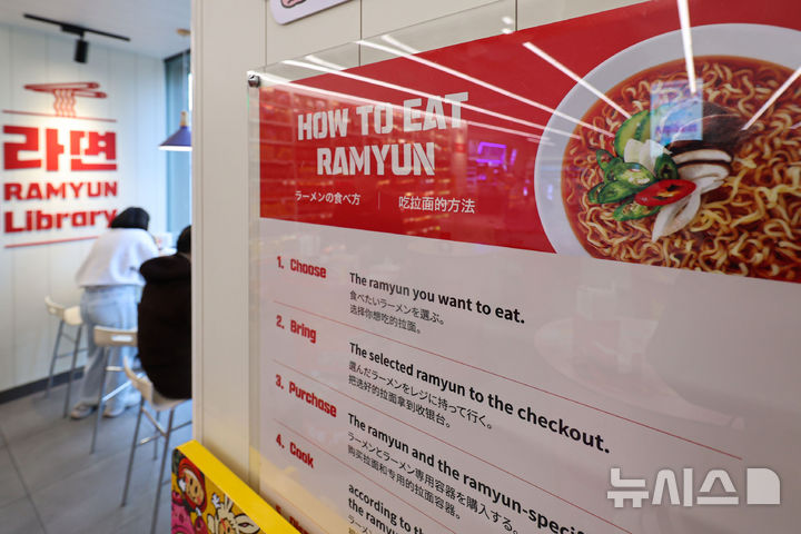 관세청에 따르면 작년 한국 라면 수출액은 전년 대비 21.8% 증가해 역대 최대인 15억 2,100만달러(약 2조2천억원)를 기록한 것으로 잠정 집계됐다. 사진은 11일 서울 마포구 CU 홍대상상점에 라면 먹는법에 대한 외국어 안내판. 2026.01.11. [email protected]
