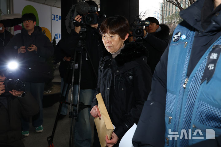 [서울=뉴시스] 황준선 기자 = 김범석 쿠팡 의장을 산업안전보건법 위반 혐의로 고발한 강민욱 택배노조 쿠팡본부 준비위원장과 대구칠곡 쿠팡물류센터에서 근무하던 중 사망한 고(故) 장덕준 씨 모친 박미숙 씨가 12일 오후 서울 중구 서울고용노동청에서 열린 고발인 조사에 출석하고 있다. 2026.01.12. [email protected]