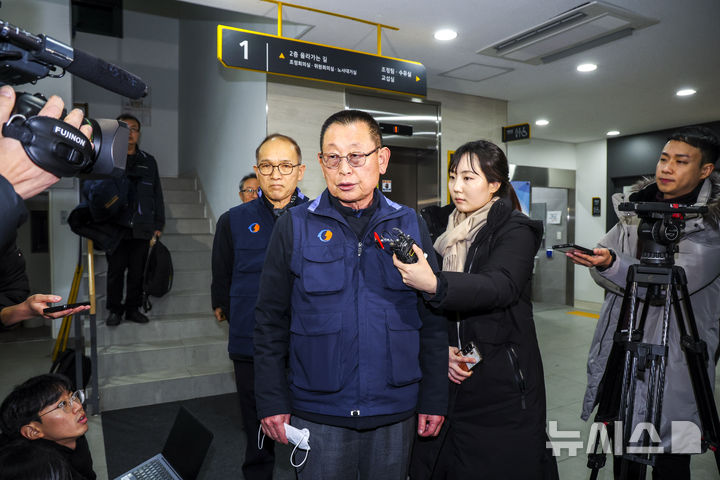 [서울=뉴시스] 정병혁 기자 = 박점곤 전국자동차노동조합연맹 서울시버스노동조합 위원장이 13일 서울 영등포구 서울지방노동위원회에서 열린 서울시버스노동조합 노동쟁의 조정신청사건 특별조정위원회 사후 조정회의에서 협상이 최종 결렬된 뒤 위원회를 나오며 입장을 밝히고 있다. 2026.01.12. [email protected]