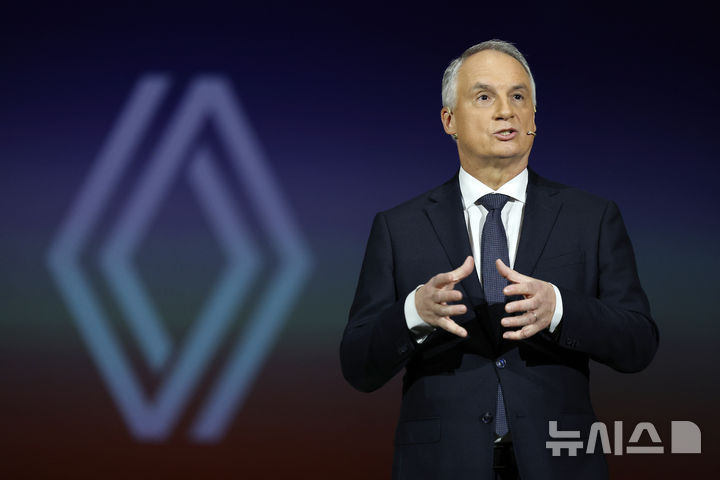 [서울=뉴시스] 조성우 기자 = 파블리스 캄볼리브 르노 브랜드 CEO·르노 그룹 부회장이 13일 서울 광진구 그랜드 워커힐에서 열린 오로라 프로젝트 두 번째 모델인 '필랑트(FILANTE)' 월드 프리미어 행사에서 발표하고 있다. 2026.01.13. [email protected]