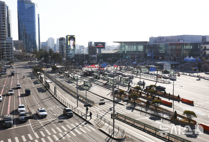 [서울=뉴시스] 김근수 기자 = 서울 시내버스 파업이 계속되는 13일 오후 서울 중구 서울역 버스환승센터 정류장이 한산한 모습을 보이고 있다. 2026.01.13. [email protected]