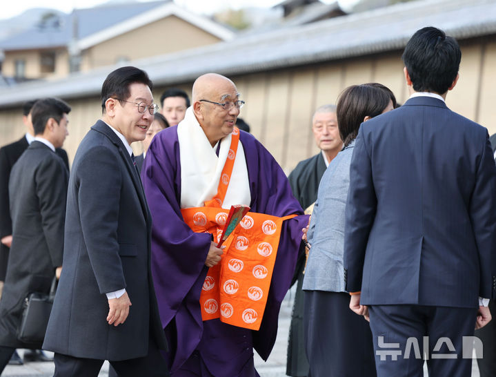 [나라=뉴시스] 고범준 기자 = 이재명 대통령이 14일(현지 시간) 다카이치 사나에 일본 총리와 친교 행사를 위해 나라현 호류지에 도착하고 있다. 2026.01.14. [email protected]