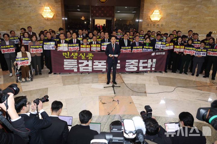 [서울=뉴시스] 조성봉 기자 = 장동혁 국민의힘 대표가 15일 오후 서울 여의도 국회에서 열린 '민생실종, 특검폭주 중단 촉구 민주당 규탄대회'에서 발언을 하고 있다. 2026.01.15. [email protected]