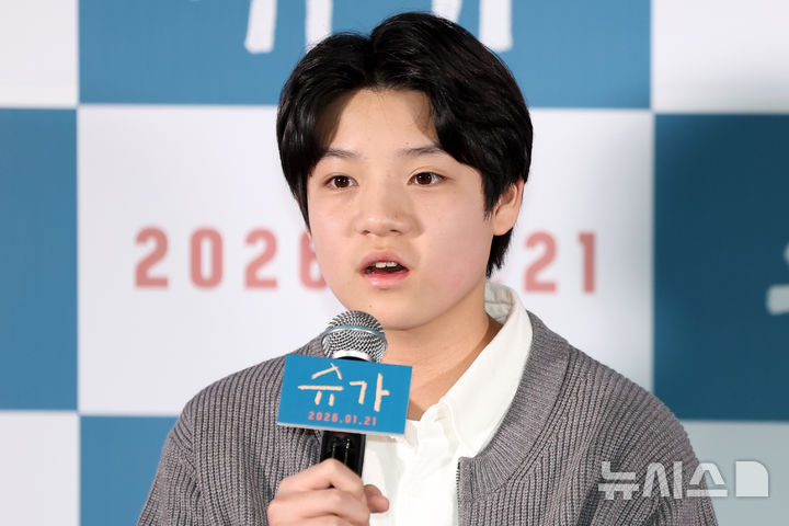 [서울=뉴시스] 조성우 기자 = 배우 고동하가 15일 오후 서울 광진구 롯데시네마 건대입구에서 열린 영화 '슈가(감독 최시춘)' 언론시사회 및 기자간담회에서 인사말을 하고 있다. 2026.01.15. [email protected]