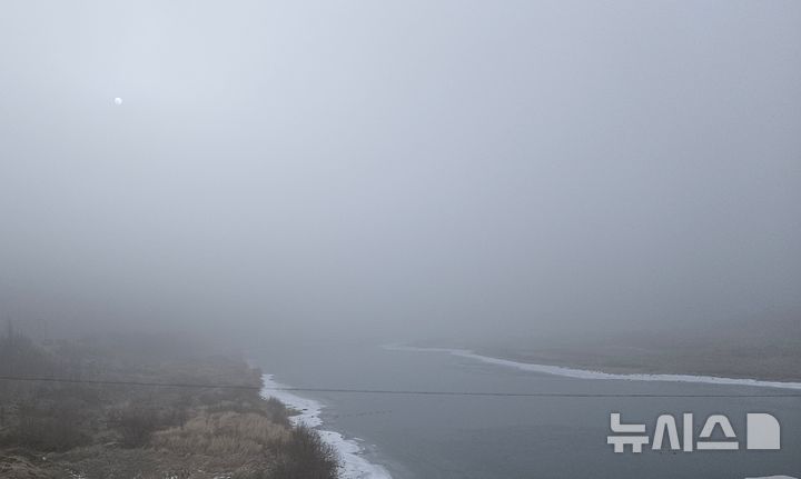 [단양=뉴시스] 이병찬 기자 = 미세먼지 농도가 나쁨 수준을 보인 16일 충북 단양군 영춘면 남한강 상공에 미세먼지와 안개가 가득 차 있다. 기상청은 이날 충청 등 지역에 미세먼지 위기경보를 발령했다[email protected]