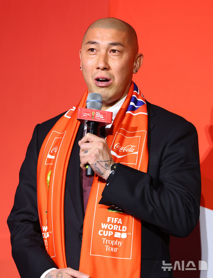 [서울=뉴시스] 황준선 기자 = 차두리 화성FC 감독이 16일 오후 서울 용산구 CGV용산아이파크몰에서 열린 FIFA 월드컵 트로피 투어 미디어 간담회에서 질문에 답변하고 있다. 2026.01.16. [email protected]