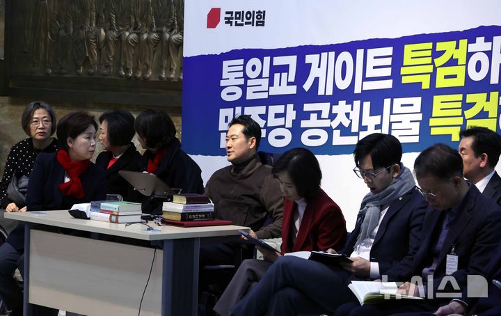 [서울=뉴시스] 조성봉 기자 = 장동혁 국민의힘 대표가 16일 오후 서울 여의도 국회 로텐더홀에서 '민주당의 공천 뇌물·통일교 게이트 특검 수용'을 촉구하는 단식농성 중 양향자 최고위원과 대화를 하고 있다. 2026.01.16. [email protected]