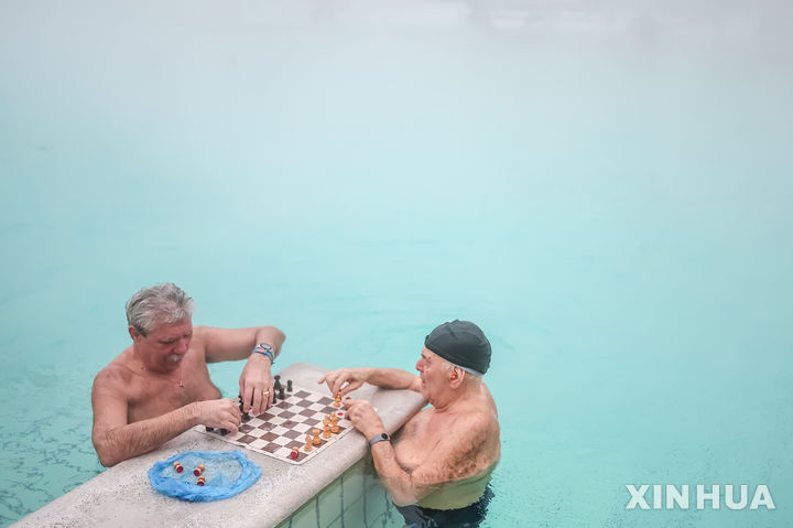 [부다페스트=신화/뉴시스] 16일(현지 시간) 헝가리 부다페스트의 세체니 온천 야외 풀장에서 방문객들이 온천욕을 즐기면서 체스를 두고 있다. 세체니 온천은 부다페스트 대표 온천으로 고대 로마 시대부터 사용된 것으로 알려졌으며, 실내와 야외 탕에서 다양한 미네랄 성분이 함유된 온천수를 즐길 수 있다. 2026.01.17.