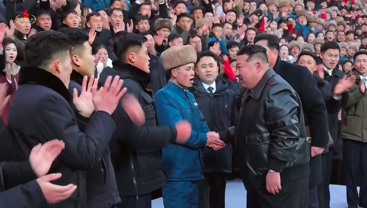[서울=뉴시스] 김정은 북한 국무위원장이 지난 16일 평양 김일성경기장에서 열린 사회주의애국청년동맹(청년동맹) 창립 80주년 기념대회에 참석했다고 북한 조선중앙TV가 17일 보도 했다. (출처=조선중앙TV 캡처) 2026.01.17. [email protected] *재판매 및 DB 금지