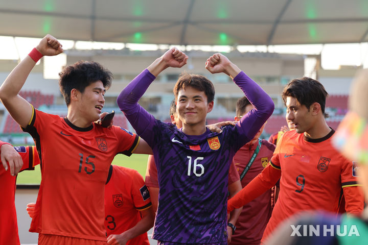 [제다=신화/뉴시스] 중국 23세 이하(U23) 골키퍼 리하오(가운데)가 17일(현지 시간) 사우디아라비아 제다의 프린스 압둘라 알파이살 스타디움에서 열린 2026 아시아축구연맹(AFC) U23 아시안컵 8강전에서 우즈베키스탄을 물리친 후 동료들과 환호하고 있다. 중국은 연장까지 0-0 무승부를 기록해 승부차기에서 4-2 승리를 거두고 4강에 올라 베트남과 결승 진출을 다툰다. 2026.01.18.
