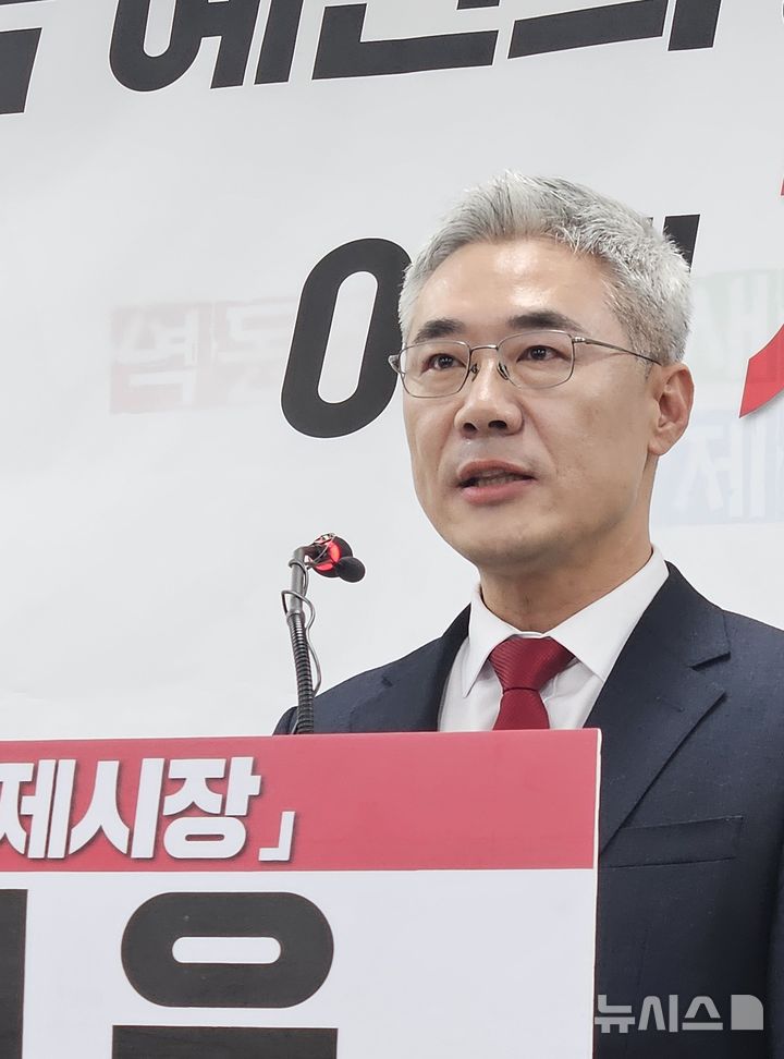 [제천=뉴시스] 이병찬 기자 = 이재우 전 기획예산처 투자사업과장이 19일 충북 제천시청 브리핑룸에서 제천시장 선거 출마를 선언하고 있다. 2026.01.19. [email protected]