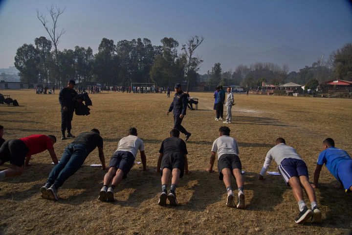 팔굽혀펴기 하는 네팔 임시 경찰 지원자들