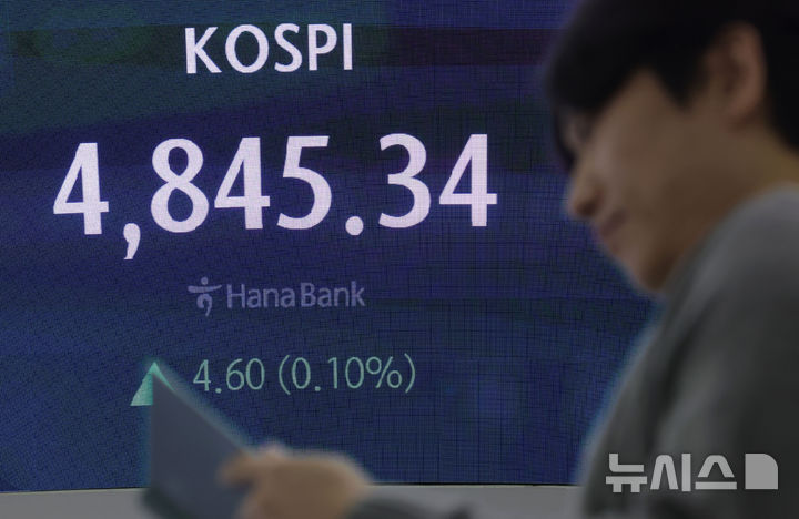 [서울=뉴시스] 홍효식 기자 = 코스피가전 거래일(4840.74)보다 11.37포인트(0.23%) 하락한 4829.40에 개장한 19일 오전 서울 중구 하나은행 딜링룸 전광판에 지수가 표시되고 있다.