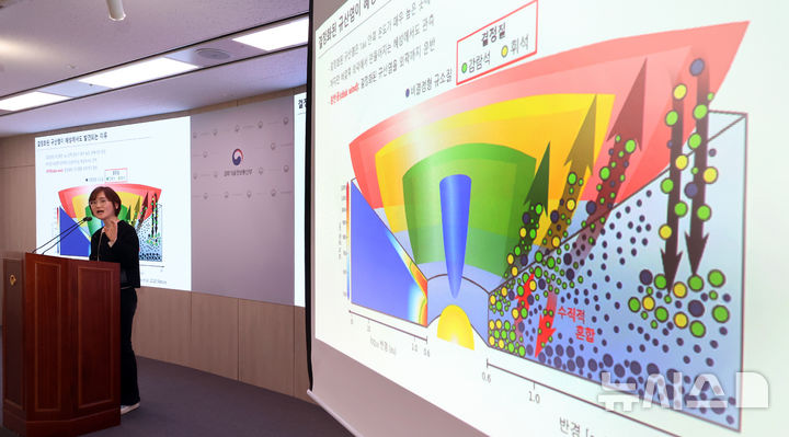 [세종=뉴시스] 강종민 기자 = 이정은 서울대 물리천문학과 교수가 지난 19일 세종시 정부세종청사에서 별이 생성될 때 규산염이 결정화되는 과정을 세계 최초로 관측해 입증하는 데 성공했다고 밝히고 있다.