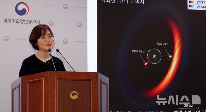 [세종=뉴시스] 강종민 기자 = 이정은 서울대 물리천문학과 교수가 지난 19일 세종시 정부세종청사에서 별이 생성될 때 규산염이 결정화되는 과정을 세계 최초로 관측해 입증하는 데 성공했다고 밝히고 있다.