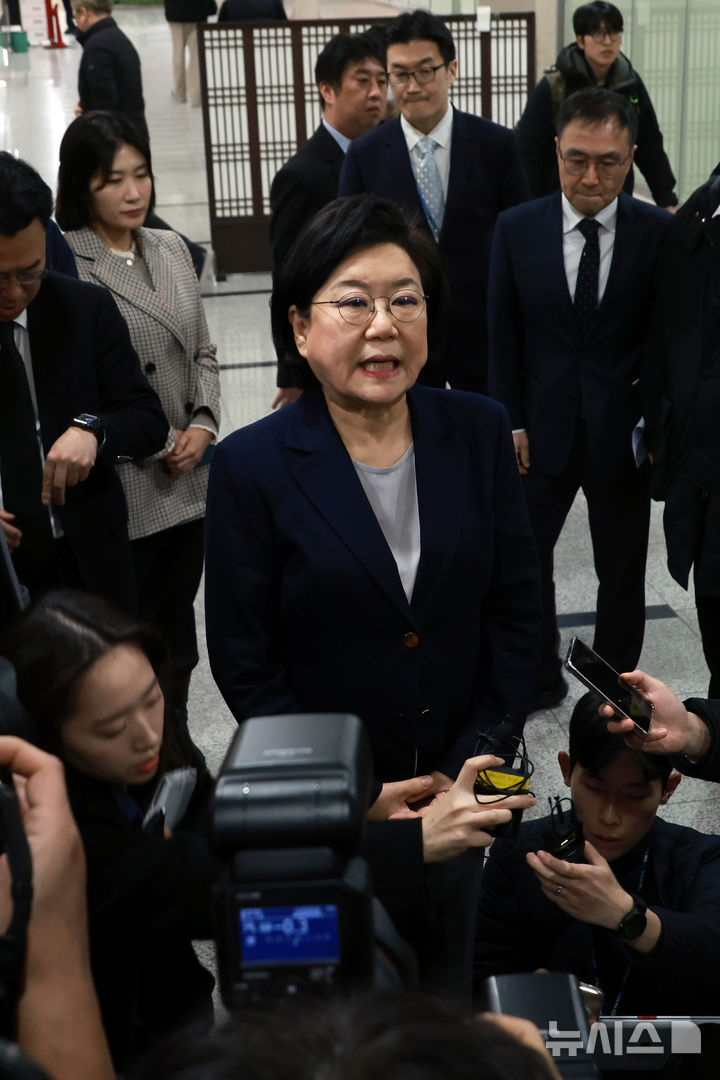 [서울=뉴시스] 고승민 기자 = 이혜훈 기획예산처 장관 후보자가 19일 서울 여의도 국회에서 입장을 밝히고 있다. 이날 열린 재정경제기획위원회 전체회의는 이 장관의 청문회 개최 여부를 놓고 여야간 공방이 이어지다 정회됐다. 2026.01.19. [email protected]