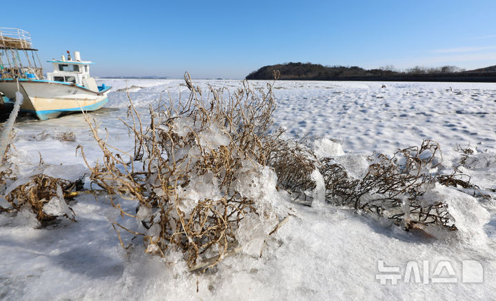 [인천=뉴시스] 전진환 기자 = 절기상 가장 춥다는 대한(大寒)인 20일 인천 중구 영종도 예단포 인근의 말라버린 나뭇가지에 바닷물이 얼어 붙어 있다. 2026.01.20. [email protected]