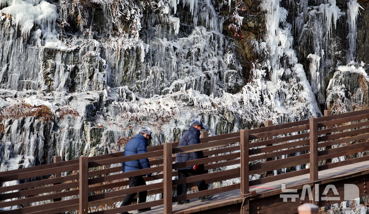 [대구=뉴시스] 이무열 기자 = 24절기 중 마지막 절기 대한(大寒)인 20일 대구 달성군 송해공원 산책로 옆에 거대한 빙벽이 만들어져 장관을 이루고 있다. 2026.01.20. [email protected]