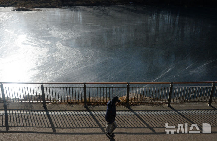 [전주=뉴시스] 김얼 기자 = 연이은 강추위로 영하권 날씨가 이어지고 있는 21일 전북 전주시 전주천 상류가 아이스링크장처럼 꽁꽁 얼어붙어 있다. 2026.01.21. [email protected]