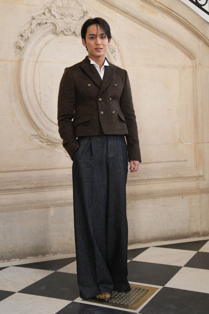 [파리=AP/뉴시스] 아이돌 그룹 세븐틴의 민규가 21일(현지 시간) 프랑스 파리에서 열린 디올 2026-27 남성 가을·겨울 컬렉션 포토콜 행사에 참석해 포즈를 취하고 있다. 2026.01.22.