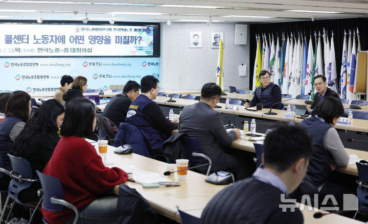 [서울=뉴시스] 김진아 기자 = 22일 서울 영등포구 한국노총 대회의실에서 '인공지능(AI)은 콜센터 노동자에 어떤 영향을 미칠까?'를 주제로 인공지능(AI)과 노동 토론회가 열리고 있다. 2026.01.22. [email protected]