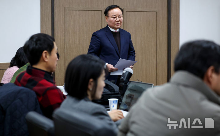 [대구=뉴시스] 이무열 기자 = 김재원 국민의힘 최고위원이 22일 대구 수성구 국민의힘 경북도당에서 열린 대구·경북 행정통합 관련 기자간담회에서 발언하고 있다. 2026.01.22. [email protected]