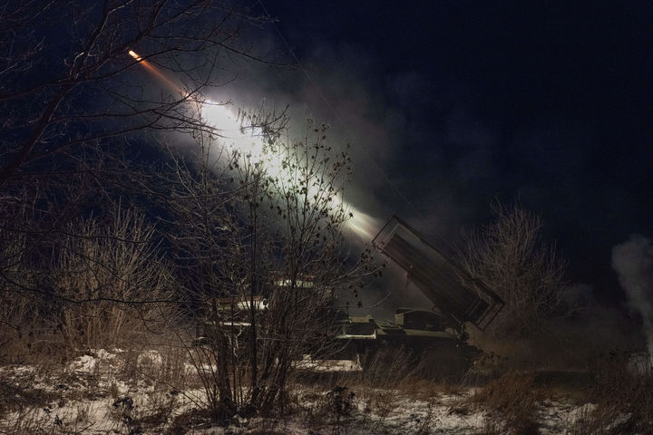 [드루즈키우카=AP/뉴시스] 우크라이나 제93기계화여단이 제공한 사진에 지난 21일(현지 시간) 우크라이나 도네츠크주 드루즈키우카에서 우크라이나 제93기계화여단 소속 군인들이 러시아군 진지를 향해 BM-21 ‘그라드’ 다연장로켓을 발사하고 있다. 2026.01.23.