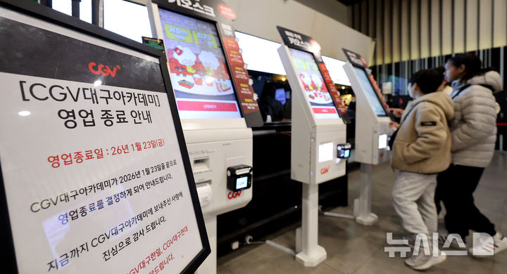 [대구=뉴시스] 이무열 기자 = 23일 대구 중구 CGV대구아카데미 영업 종료 안내문 붙어있다.