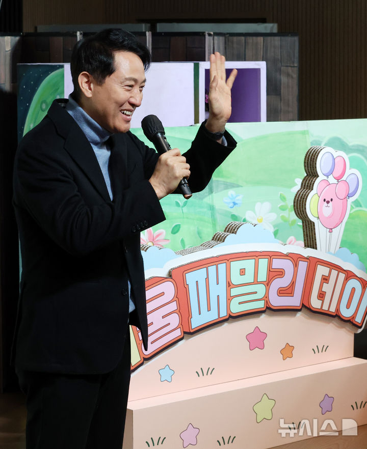 [서울=뉴시스] 조성우 기자 = 오세훈 서울시장이 24일 서울 강동구 강동중앙도서관에서 열린 '서울 패밀리 데이'에 참석해 축사하고 있다. 2026.01.24. [email protected]