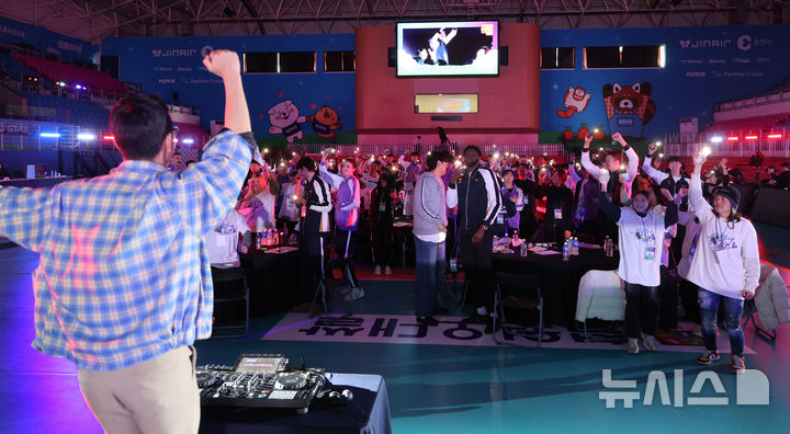 [춘천=뉴시스] 권창회 기자 = 24일 강원 춘천시 호반체육관에서 열린 진에어 2025~2026 V-리그 올스타전 사전행사에서 올스타 선수들이 팬들과 즐거운 시간을 보내고 있다. 2026.01.24. [email protected]
