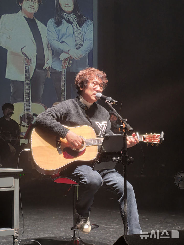 [대구=뉴시스] 포크 뮤지션 허만성이 24일 대구시 북구 어울아트센터에서 열린 '두 남자의 통기타 이야기' 콘서트에서 공연하고 있다. 2026.01.24 [email protected]