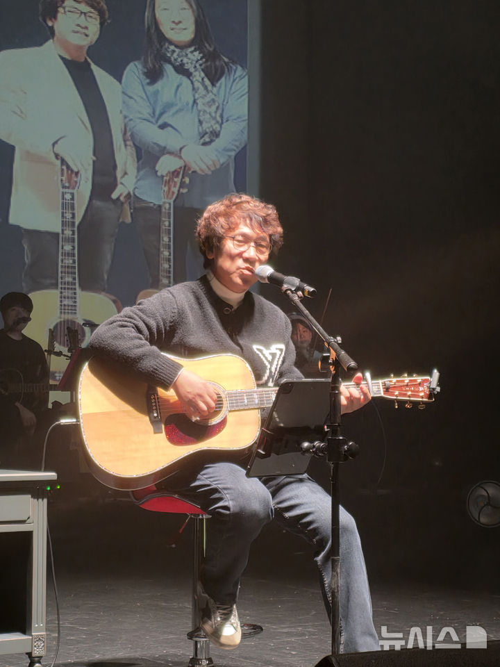[대구=뉴시스] 포크 뮤지션 허만성이 24일 대구시 북구 어울아트센터에서 열린 '두 남자의 통기타 이야기' 콘서트에서 공연하고 있다. 2026.01.24 [email protected]