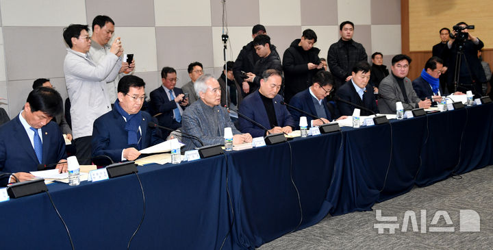 [광주=뉴시스] 변재훈 기자 = 25일 광주 서구 김대중컨벤션센터 회의실에서 광주·전남 행정통합 특별법 제정 간담회가 열리고 있다. 2026.01.25. [email protected]