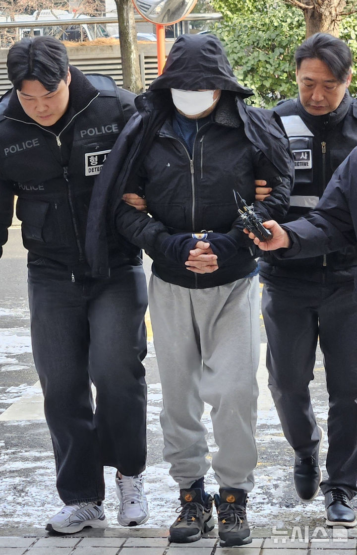 [인천=뉴시스] 이루비 기자 = 90대 노모를 폭행해 숨지게 한 아내의 범행을 방조한 혐의로 구속영장이 청구된 60대 남성이 26일 오후 인천 미추홀구 인천지법에서 열린 구속 전 피의자 심문(영장실질심사)에 출석하고 있다. 2026.01.26. [email protected]