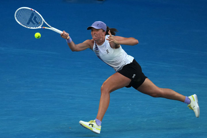 [멜버른=AP/뉴시스] 이가 시비옹테크(2위·폴란드)가 26일(현지 시간) 호주 멜버른에서 열린 호주오픈 여자 단식 16강전에서 매디슨 잉글리스(168위·호주)와 경기하고 있다. 시비옹테크가 2-0(6-0 6-3)으로 승리하고 8강에 올랐다. 2026.01.23.