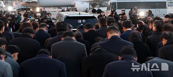 [인천공항=뉴시스] 공항사진기자단 = 베트남 출장 중 심근경색으로 쓰러져 별세한 이해찬 민주평화통일자문회의 수석부의장의 시신이 27일 오전 인천국제공항에 도착, 빈소가 마련된 서울대병원 장례식장으로 운구되고 있다. 2026.01.27. [email protected]