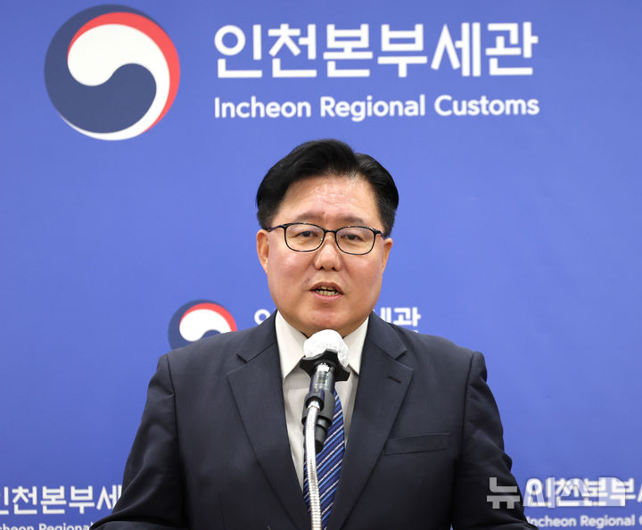 브리핑하는 김재철 인천본부세관 조사국장