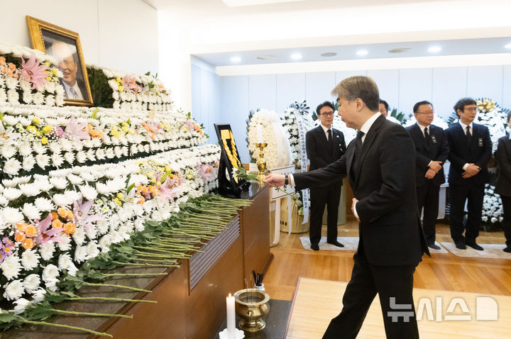[서울=뉴시스] 황준선 기자 = 염영남 뉴시스 대표이사가 28일 오전 서울 종로구 서울대학교병원 장례식장에 마련된 고(故) 이해찬 전 국무총리의 빈소에 헌화하고 있다. 2026.01.28. [email protected]