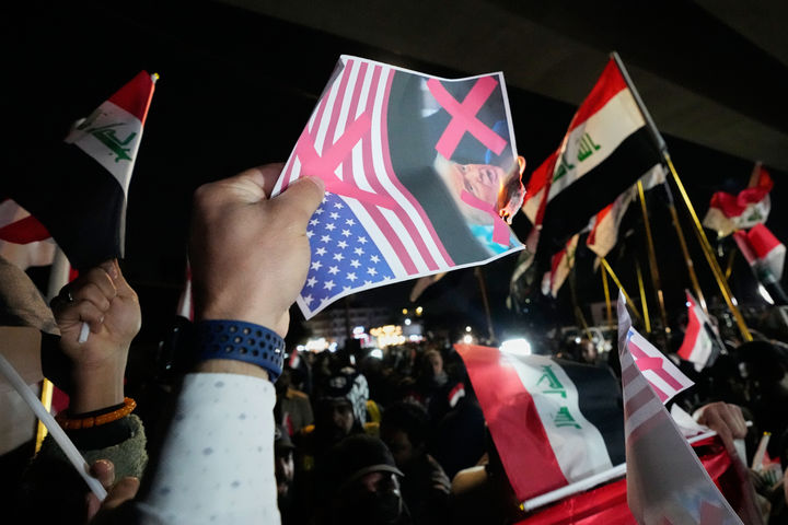 성조기와 트럼프 사진 태우는 이라크 시위대