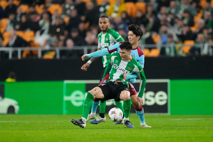 [세비야=AP/뉴시스] 페예노르트(네덜란드)의 황인범(가운데)이 29일(현지 시간) 스페인 세비야의 라 카르투하 스타디움에서 열린 2025-26 유럽축구연맹(UEFA) 유로파리그(UEL) 리그 페이즈 8차전 베티스와 경기 중 공을 다투고 있다. 황인범은 후반 16분 교체 투입됐으며, 페예노르트는 1-2로 패해 탈락했다. 2026.01.30.