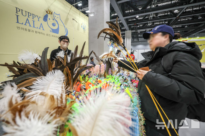 [서울=뉴시스] 정병혁 기자 = 30일 서울 강서구 코엑스마곡에서 열린 2026 냥냥펀치캣쇼를 찾은 참관객들이 반려동물 용품을 살펴보고 있다. 2026.01.30. [email protected]
