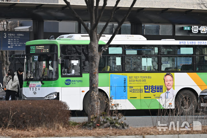 [광주=뉴시스] 이영주 기자 = 제9회 전국동시지방선거와 관련해 정당·후보명 현수막 등 설치가 금지되는 2월3일을 나흘 앞둔 30일 광주 서구 유·스퀘어종합버스터미널 버스승강장에 광주지역 지방선거 출마 입지자들의 정당·후보명 광고판이 달린 시내버스가 다니고 있다. 2026.01.30. [email protected]